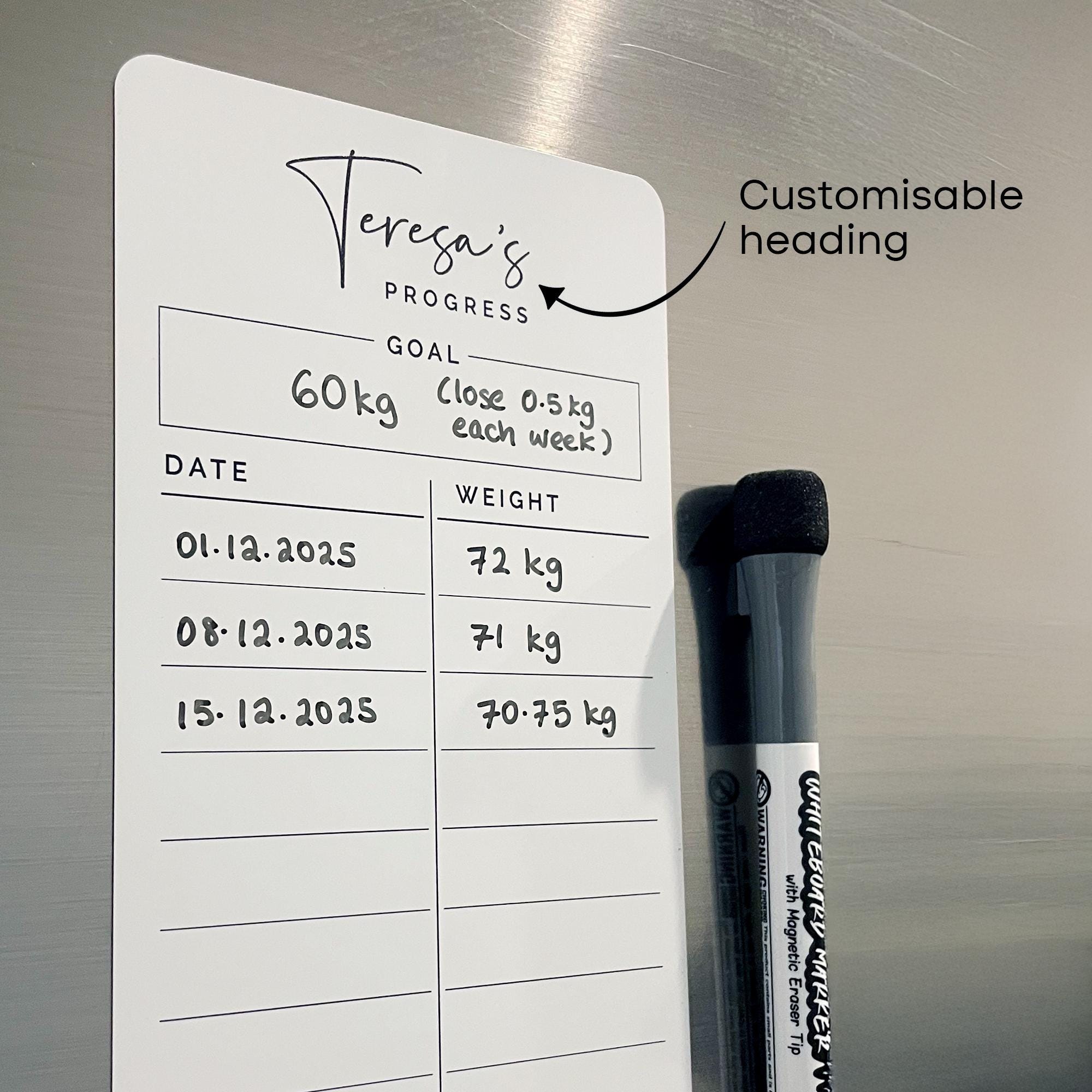 - "Goals" box and column subheadings ("Date" and "Weight") may be personalised upon request. Please make your customisation clear in the Personalisation Box.