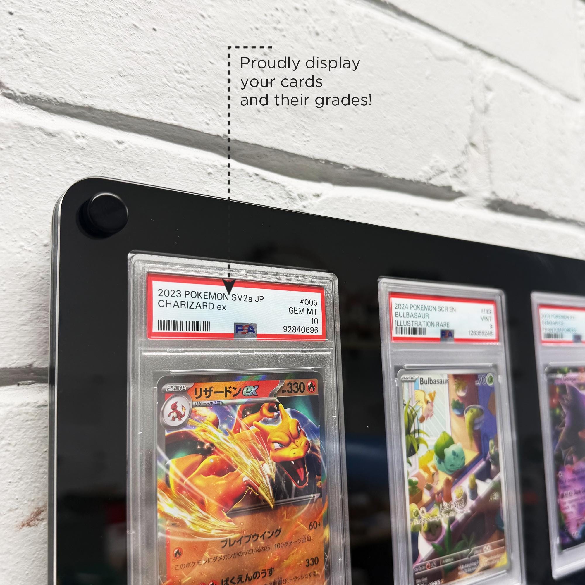 Whether it be Pokémon, Yu-Gi-Oh, Magic: The Gathering, One Piece, or sports trading cards, and whether they're graded by PSA, CGC, or other grading type, our display works for any graded and slabbed cards you wish to display.