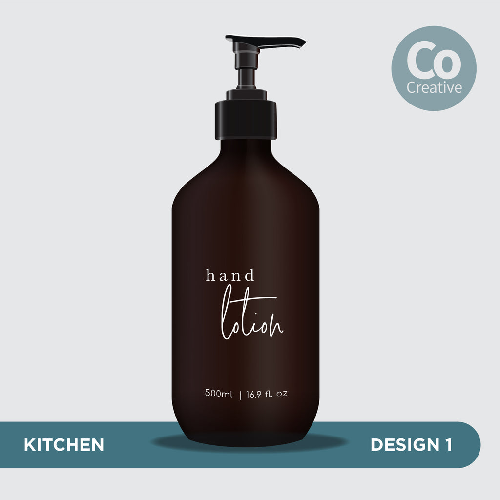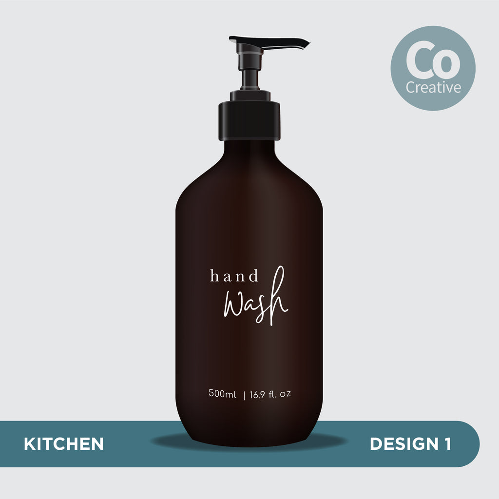 Keep your kitchen bench tidy with these durably UV-printed plastic AMBER pump bottles with white print.