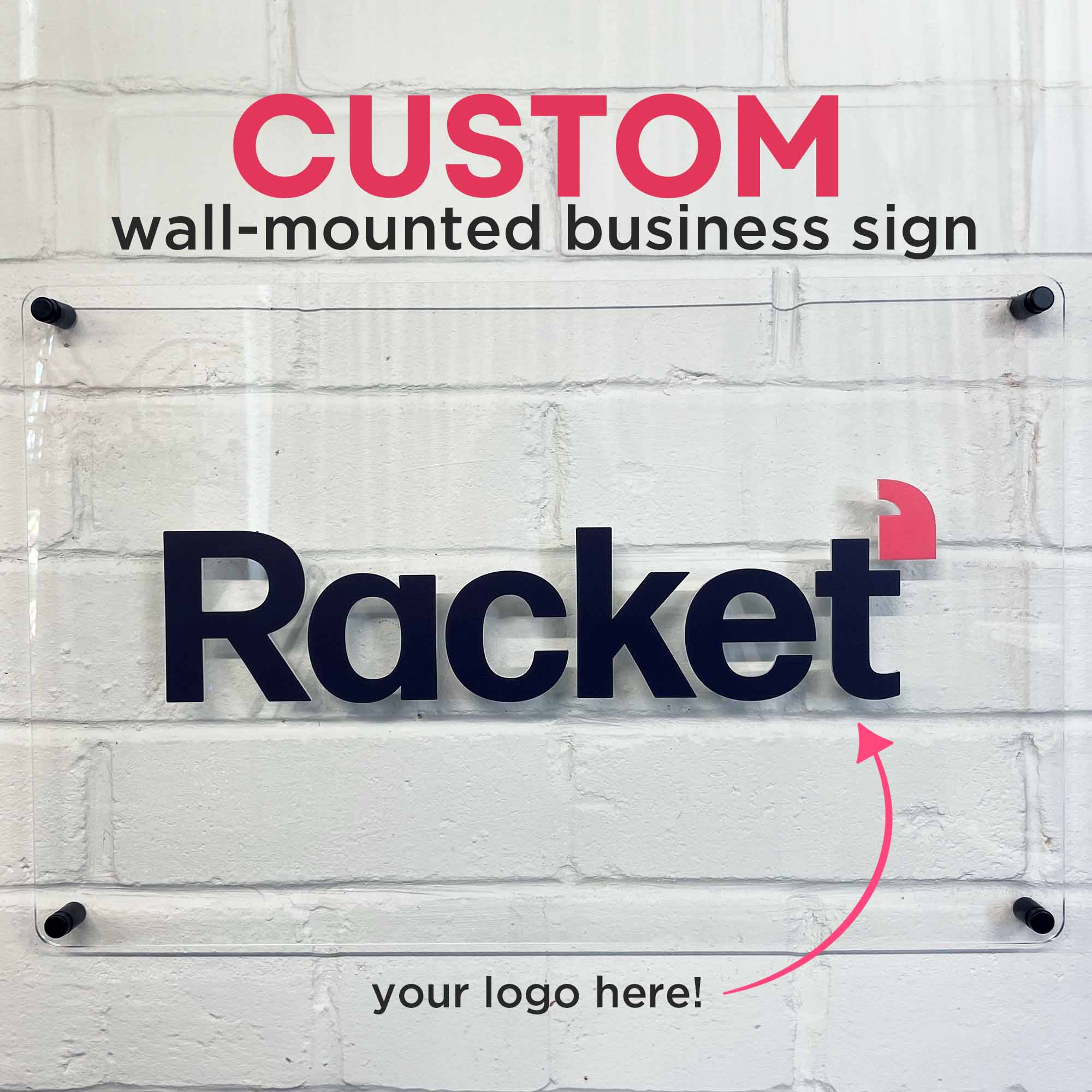Customise your sign with your business logo/name or socials elegantly mounted on a clear acrylic backing.
